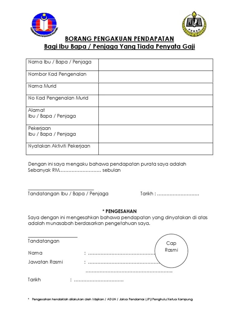 Related : Pengesahan Pendapatan Ibu Bapa - (ibu bapa bekerja sendiri dan tidak mempunyai slip pendapatan..