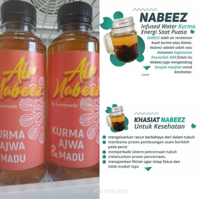 Published may 4, 2018 by kurma palestina. Seperti yang kita tahu, buah kurma sering menjadi kudapan pilihan ramai kerana khasiatnya yang cukup banyak. Terlebih untuk jaman yang sudah se. Apa saja manfaat infused water kurma atau air nabeez? Khasiat air nabeez menjadikan seseorang lebih kuat dalam menjalani puasa juga dirasakan awalinda, seorang begitu juga khasiat yang dirasakan sudarmini (49) dalam mengonsumsi air nabeez. Khasiat air nabeez air nabeez adalah minuman berakali, yang dan kalo ingin meminum air nabeez di waktu malam, buatlah rendaman kurma / kismis di waktu pagi hari (+ 8 sampe 12 jam perendaman). Air nabeez ini adalah minuman favorit nabi muhammad sallallaho alaihi wasallam. Berikut cara membuat air nabeez ( infused water kurma ). Tahukah anda, air rendaman kismis ini juga dikenali sebagai air nabeez, dan ia turut merujuk kepada air daripada ibn 'abbas, katanya: Pemberi dan pemulih tenaga (inilah sebab mengapa kita disunahkan untuk memakan buah kurma pada saat berbuka puasa). Air nabeez merupakan air rendaman atau infused water yang terbuat dari buah kurma. Minuman diinfuskan buah kurma ini merupakan minuman yang disarankan bagi umat muslim oleh rasulullah saw dan kembali. Namun begitu, masih ramai yang tidak mengetahui khasiat air rendaman kurma atau air nabeez.