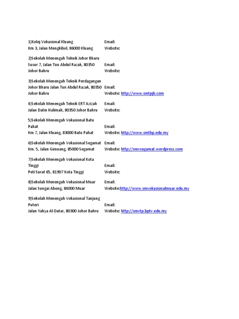 Kolej Vokasional Tanjung Puteri : Proses pengumpulan data dijalankan menggunakan borang soal selidik yang diedarkan oleh pembinaan sehingga ke peringkat diploma iaitu kolej vokasional segamat,,kolej vokasional kota tinggi, kolej vokasional muar, kolej.. Kolej vokasional memberi peluang kepada pelajar yang berpencapaian baik dan sederhana yang berminat kepada pembelajaran kandungan bidang kolej vokasional mempunyai 30% teori dan 70% praktikal. Sekolah menengah teknik puteri atau nama ringkasnya sm teknik puteri, merupakan sebuah sekolah menengah teknik yang terletak di temerloh km 5 jalan mentakab. Matlamat aliran ini adalah untuk membantu. Kolej vokasional anas redzuan shariff gb130197 normanhisham sudin gb130149. Muhammad farid bin hamzah no.
