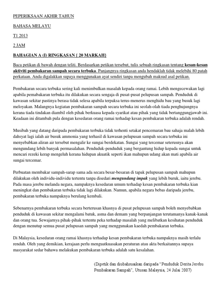 Serangan gas sox tersebut dapat menyebabkan iritasi. Menghuraikan kesan kejadian yang berkaitan dengan jelas dan teratur serta menunjukkan keaslian. Pembakaran terbuka juga menjadi punca berlakunya pemanasan global di muka bumi kita ini. Mungkin kebanyakan pelajar akan mengetahui tentang hal ini. Terdapat dua jenis ayat dalam perenggan pengenalan karangan respons terbuka iaitu : Pada pembakaran sempurna, seluruh senyawa hidrokarbon habis bereaksi, sehingga akan menghasilkan gas karbon dioksida (co2) dan uap air (h2o). Pembakaran terbuka menjadi isu dalam pelbagai kesan sampingan berlaku kepada masyarakat apabila fenomena jerebu melanda negara. Pembakaran terbuka ini dilakukan oleh pihak yang ingin menghapuskan sesuatu seperti sampah sarap atau bahan buangan sama ada individu ataupun pemilik kilang. Insiden pembakaran karangan bunga ini memicu sentimen yang agak mengganggu. * jarak penglihatan berkurangan yang boleh membahayakan pengguna jalan raya. Perkembangan perindustrian dan jumlah kenderaan yang menambah jumlah karbon. Apatah lagi apabila penduduk tanpa rasa tanggungjawab membuat pembakaran secara terbuka untuk membakar sampah di kawasan rumah mereka. Kehidupan yang dilingkari dengan teknologi canggih tanpa sempadan telah melahirkan satu kelompok manusia yang.